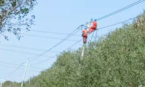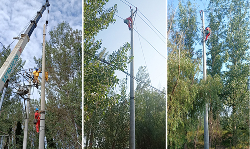 東營華昌電力工程有限公司進行10kV王崗線武王分支線絕緣化改造工程。下圖為現(xiàn)場施工圖: