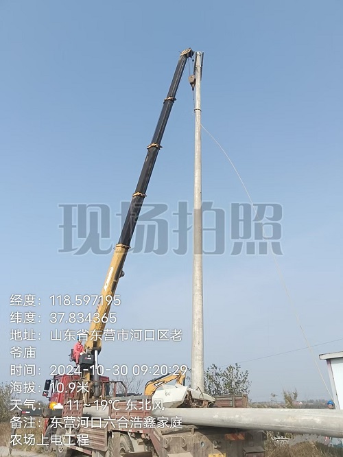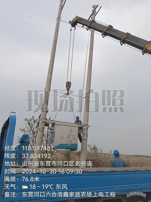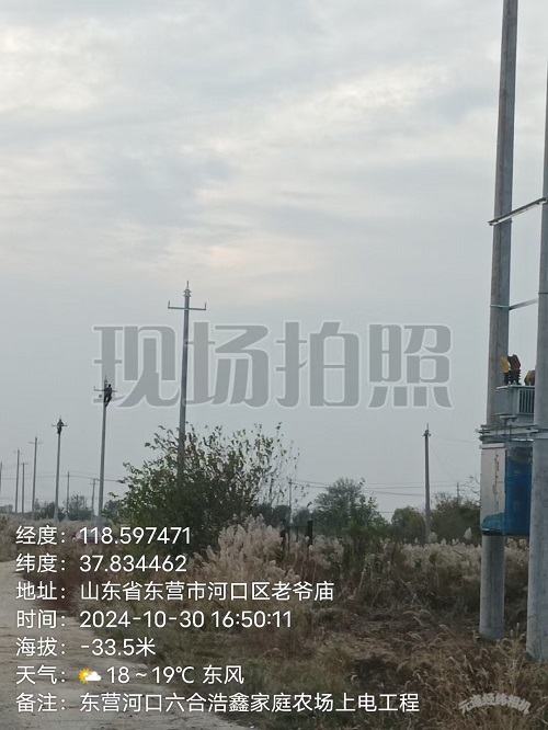 2024年10月30日,河口區(qū)浩鑫家庭農(nóng)場上電工程施工現(xiàn)場